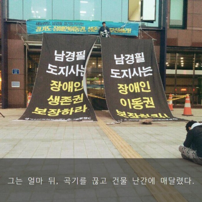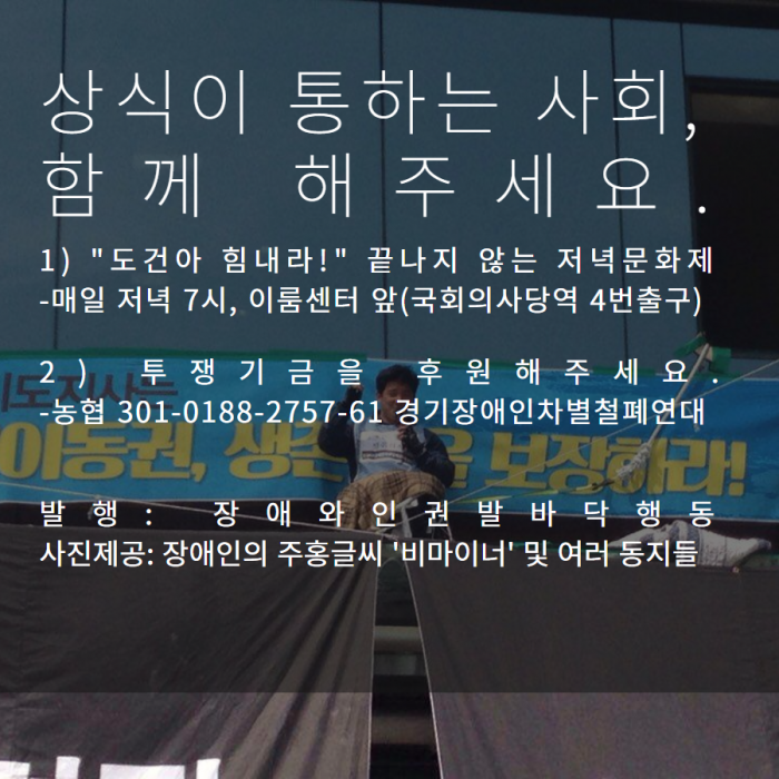 여의도 이룸센터 난간에 매달려 단식 농성 8일차를 보내고 있는 이도건동지와 그와 함께 마음이 타들어가는 동지들에게 보냅니다.